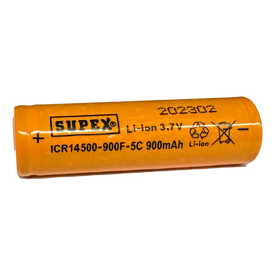 Supex ICR14500-900F-5C Lityum Ion 3.7V 900mAh 5C Deşarj Akımı Düz Kafa Pil